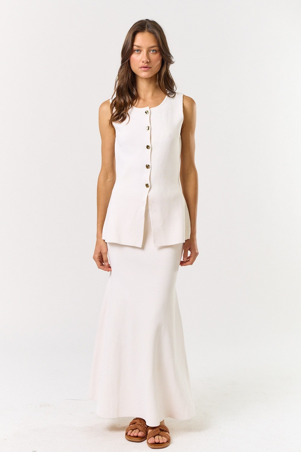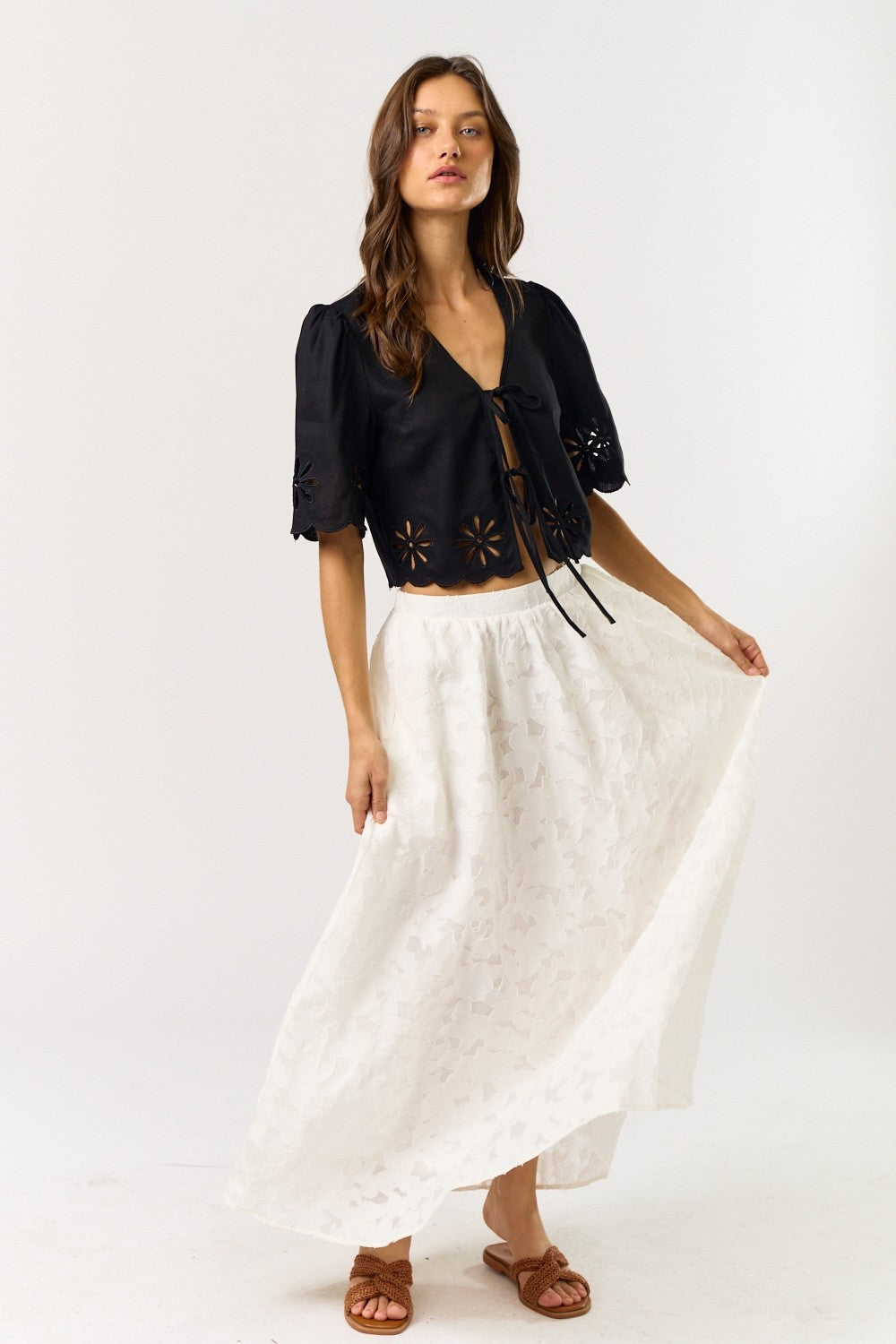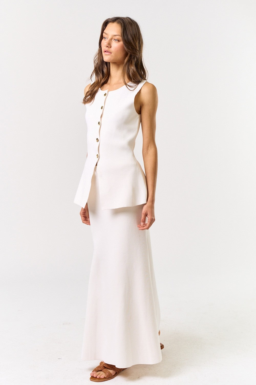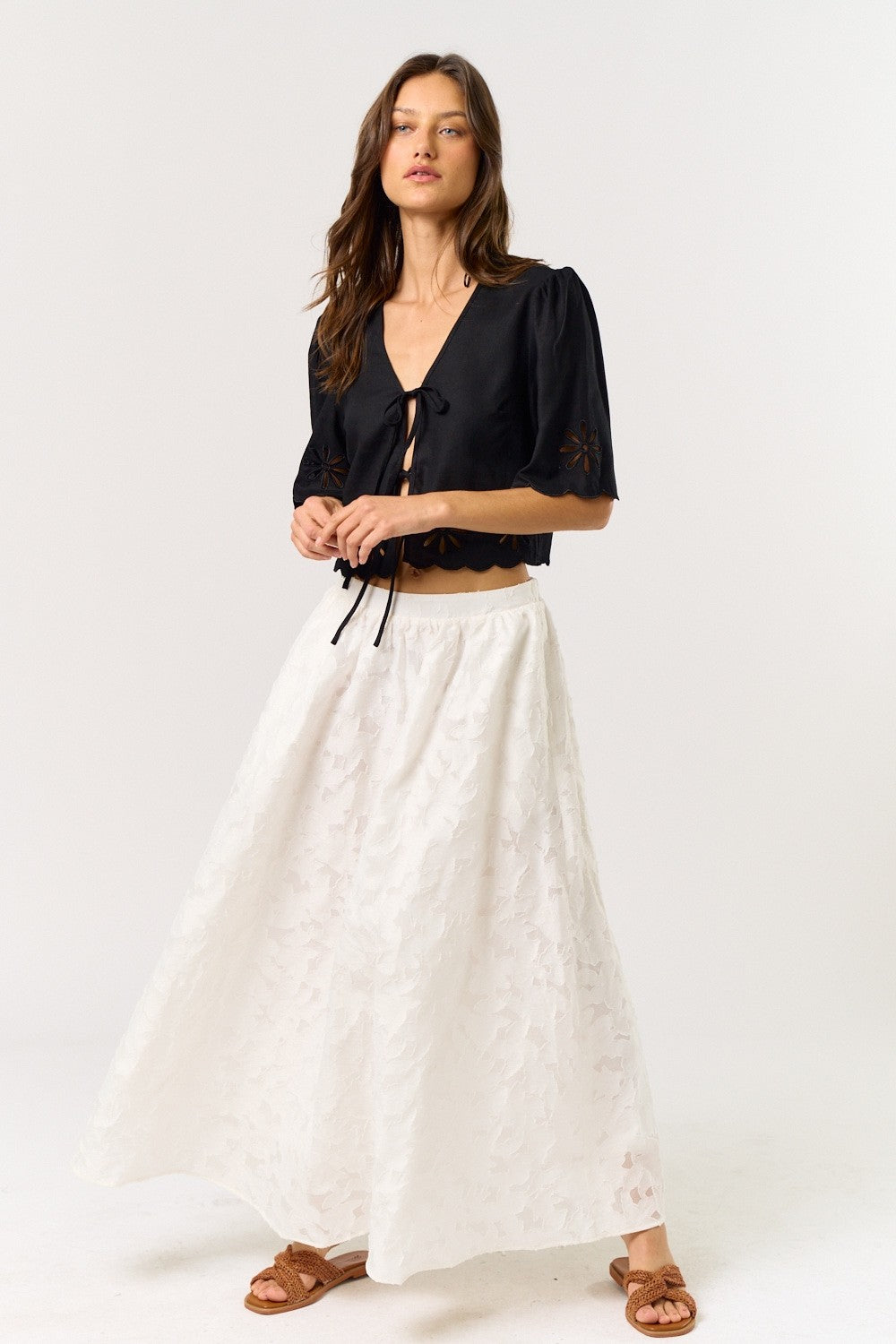 The Roma Ecru Crop Top + Midi Skirt Set - Sold Separately