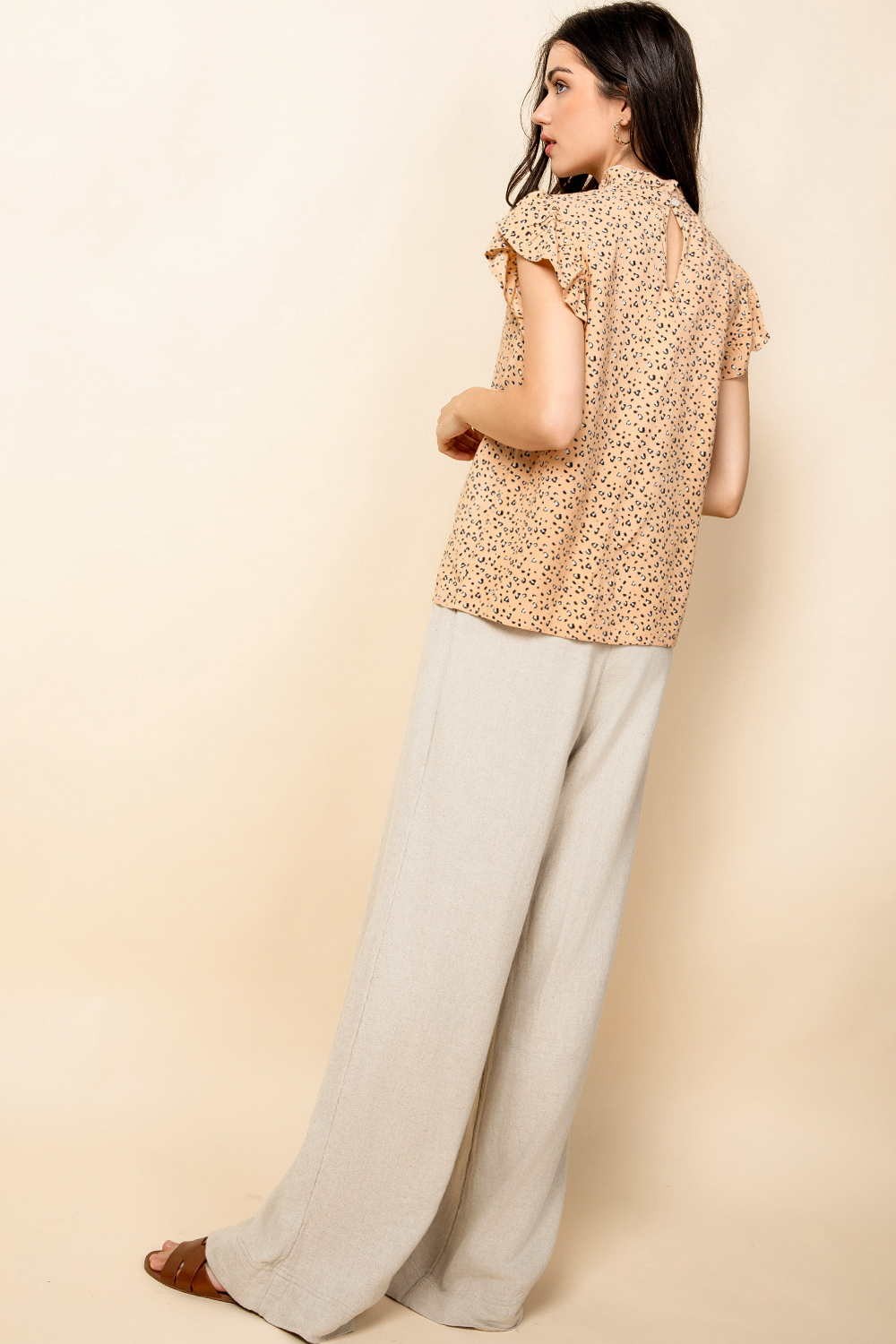 The Della New Taupe Smocked Wide Leg Pants