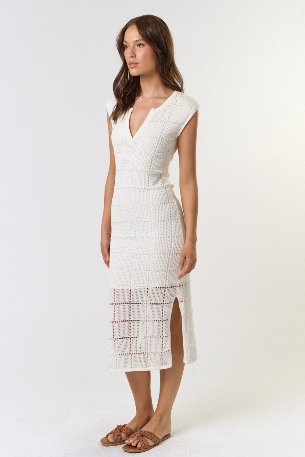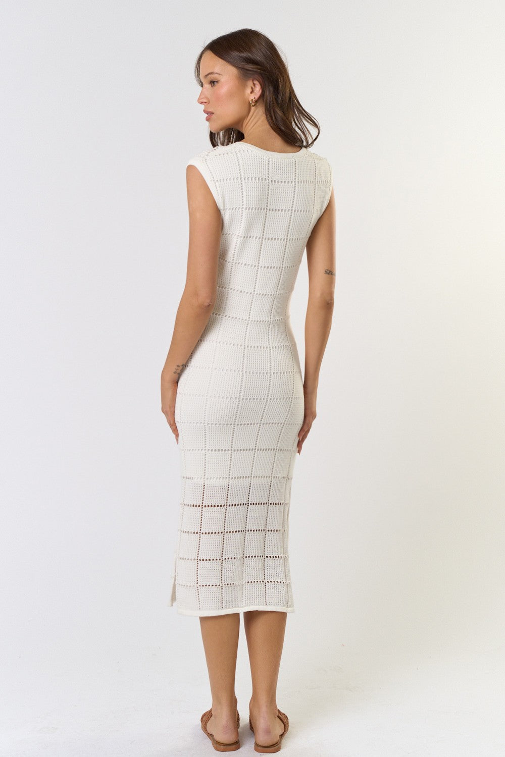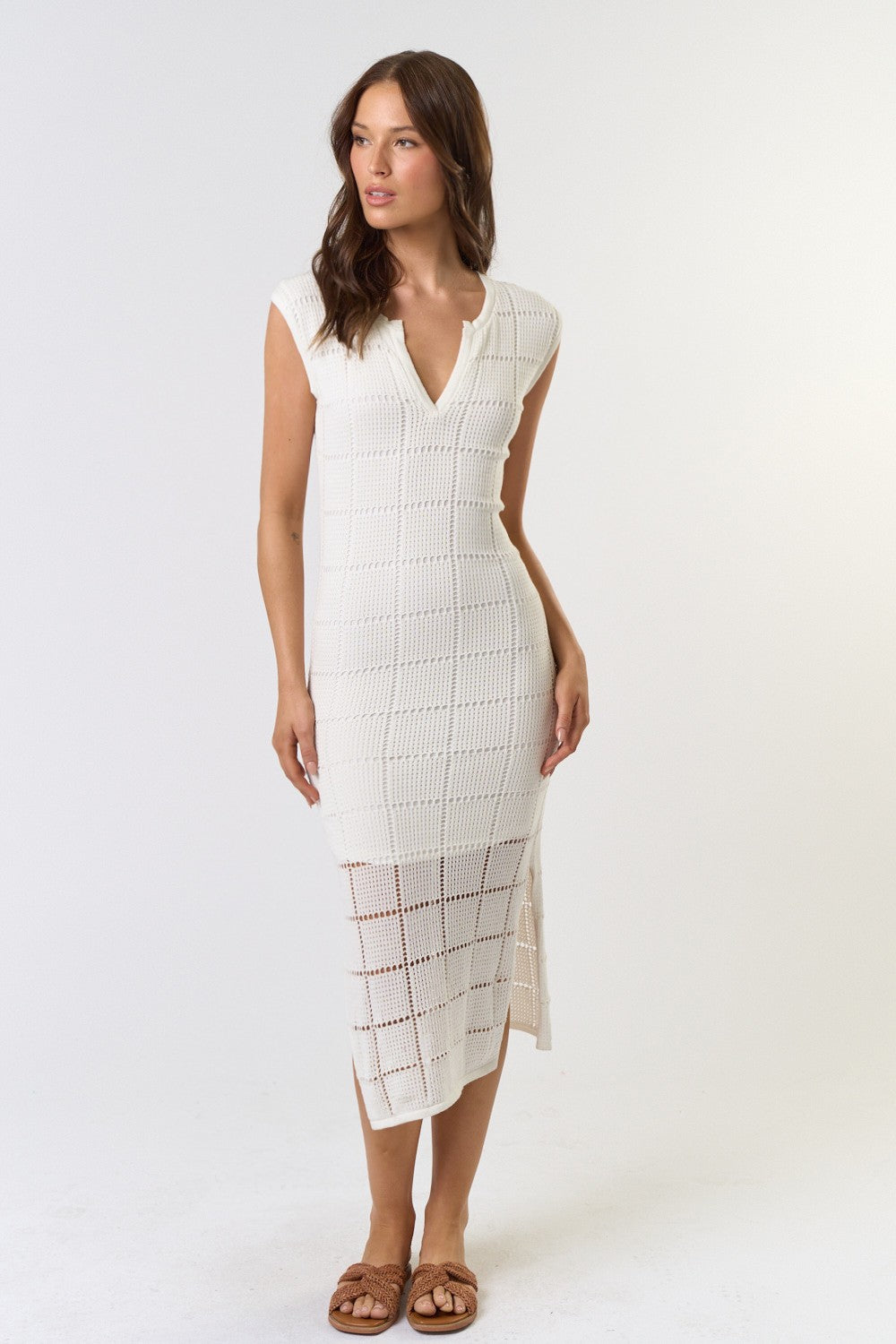 The Remy Cream Pointelle Ribbed Knit Sweater