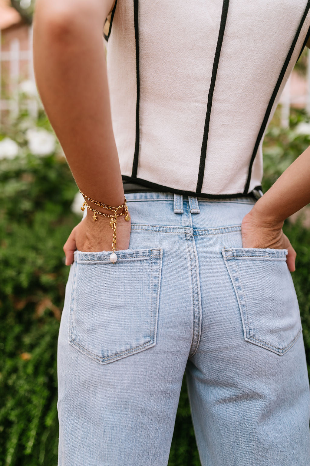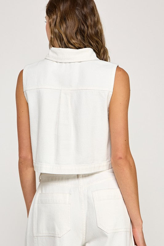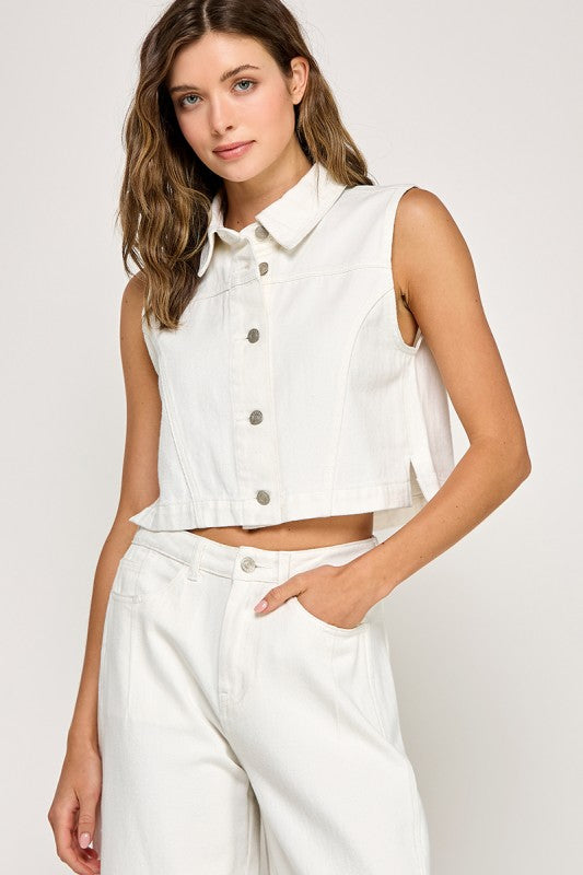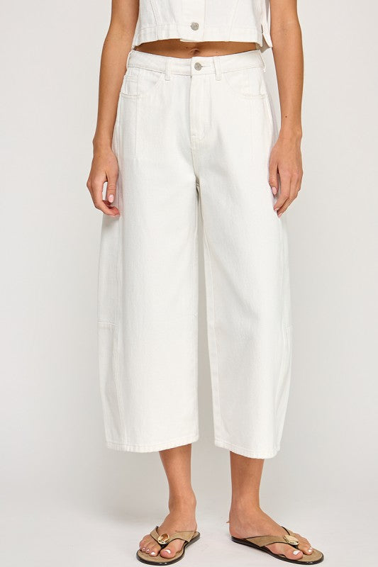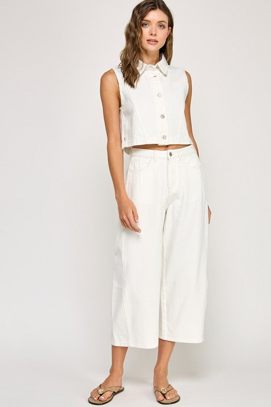 The Kylie Off White Denim Vest + Barrel Jeans Set - Sold Separately