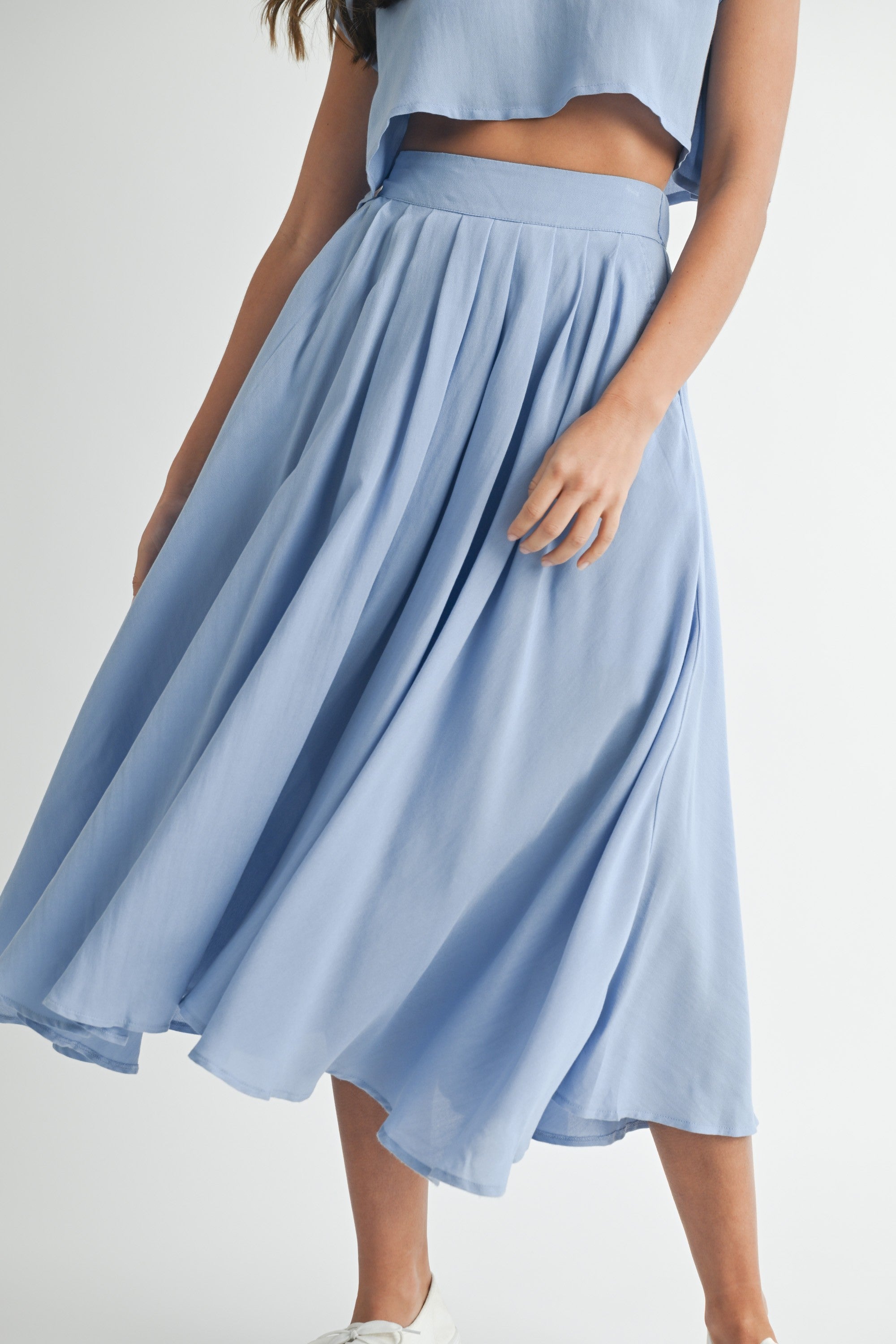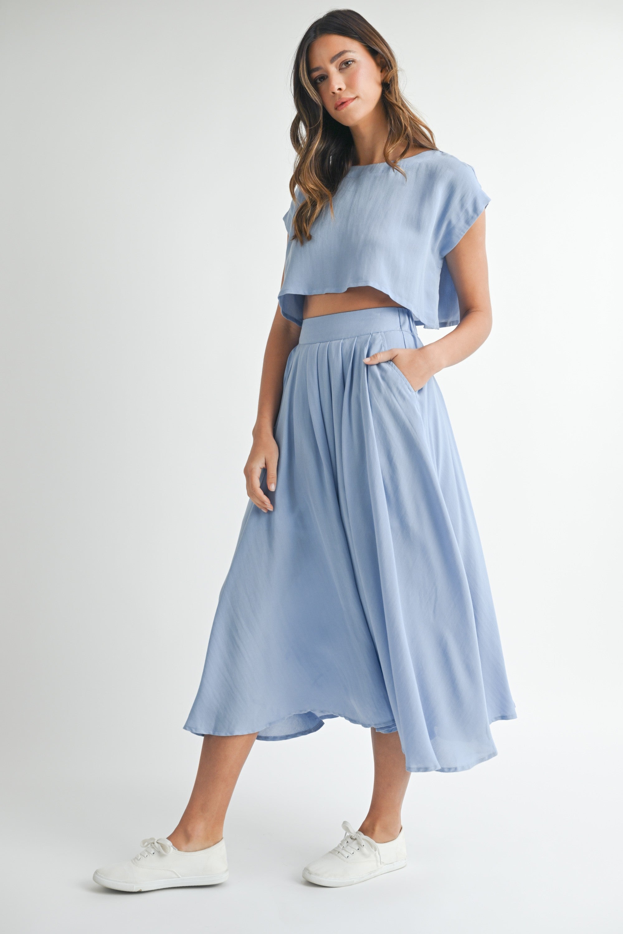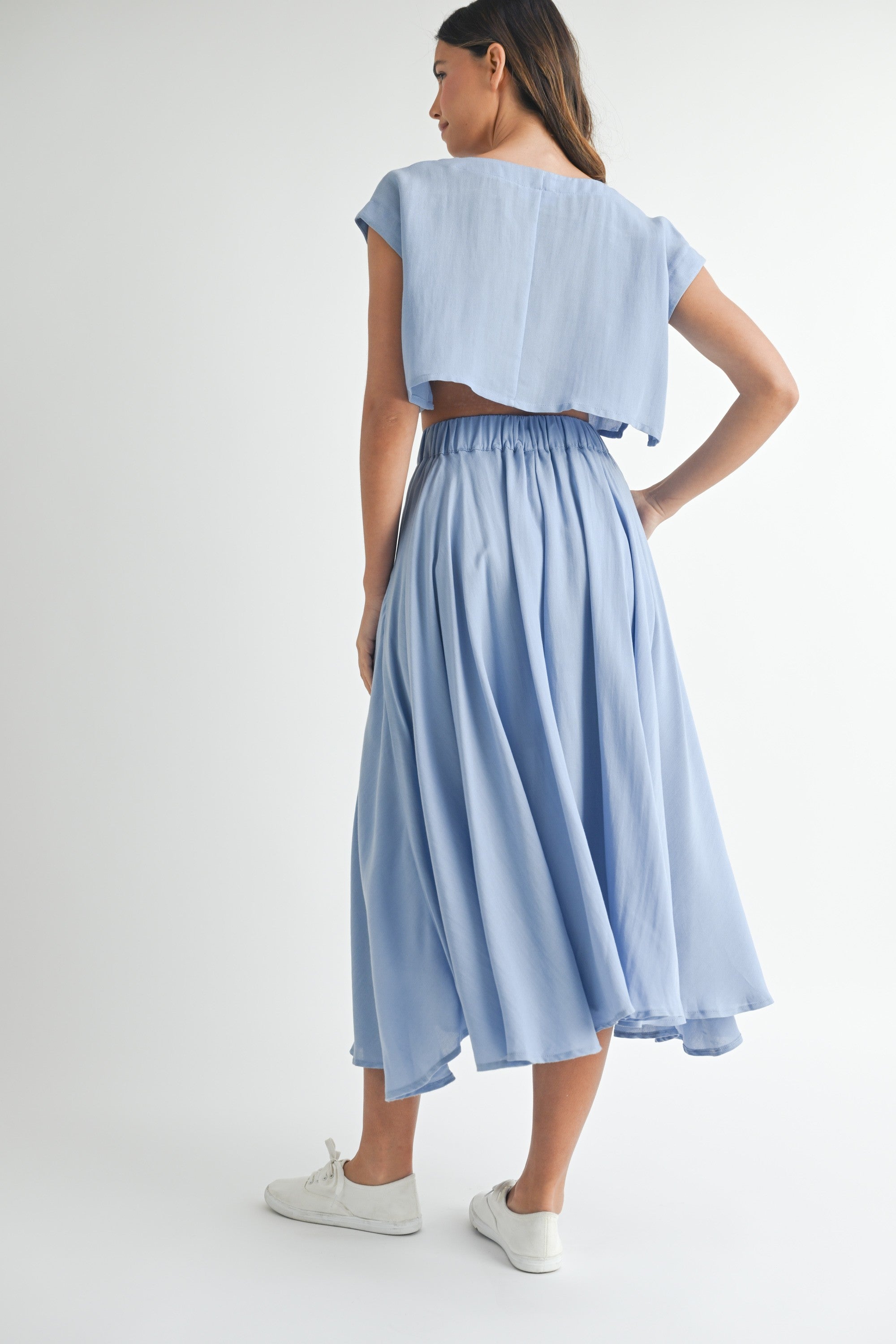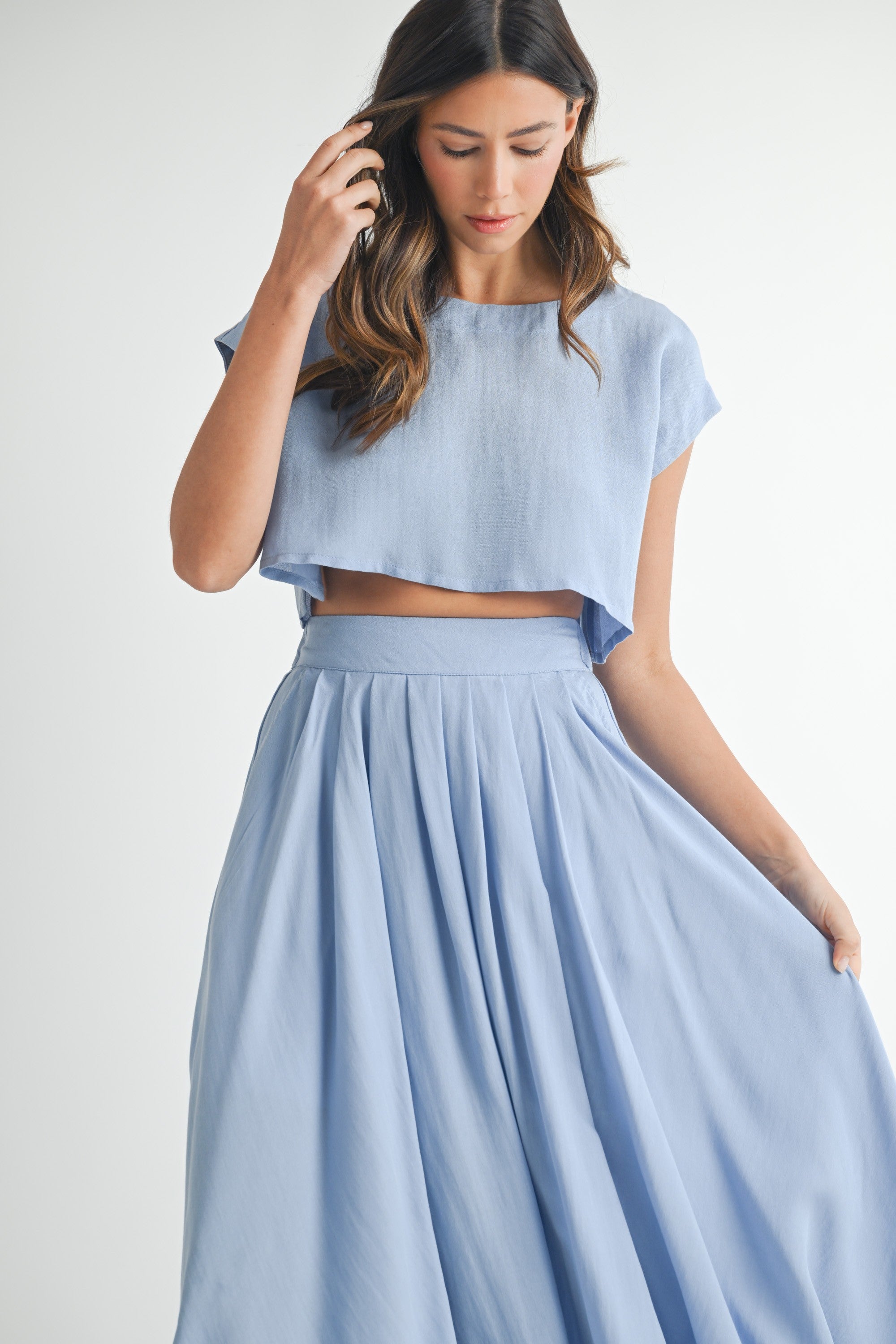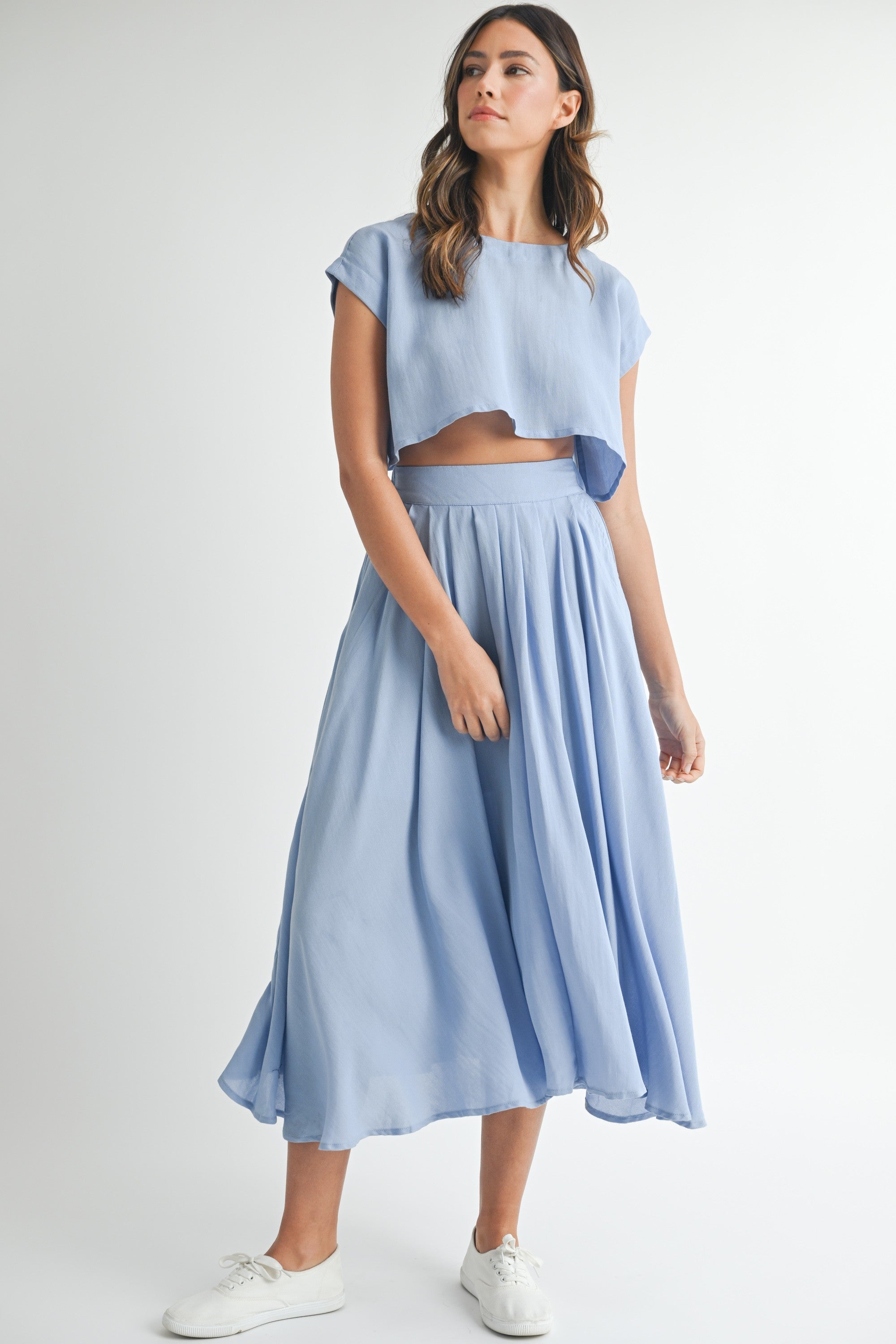 The Santorini French Blue Crop Top + Midi Skirt Set- Sold Separately