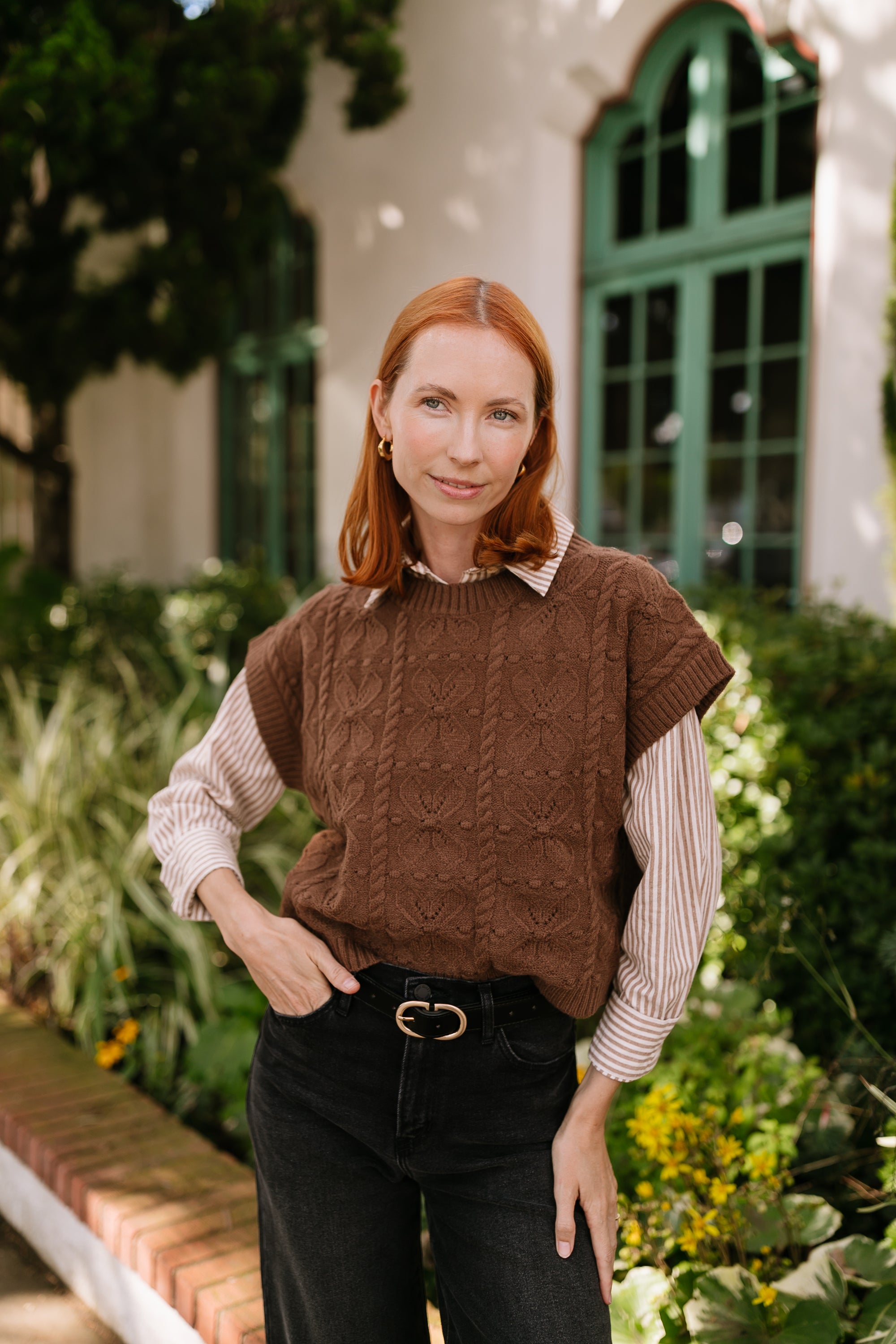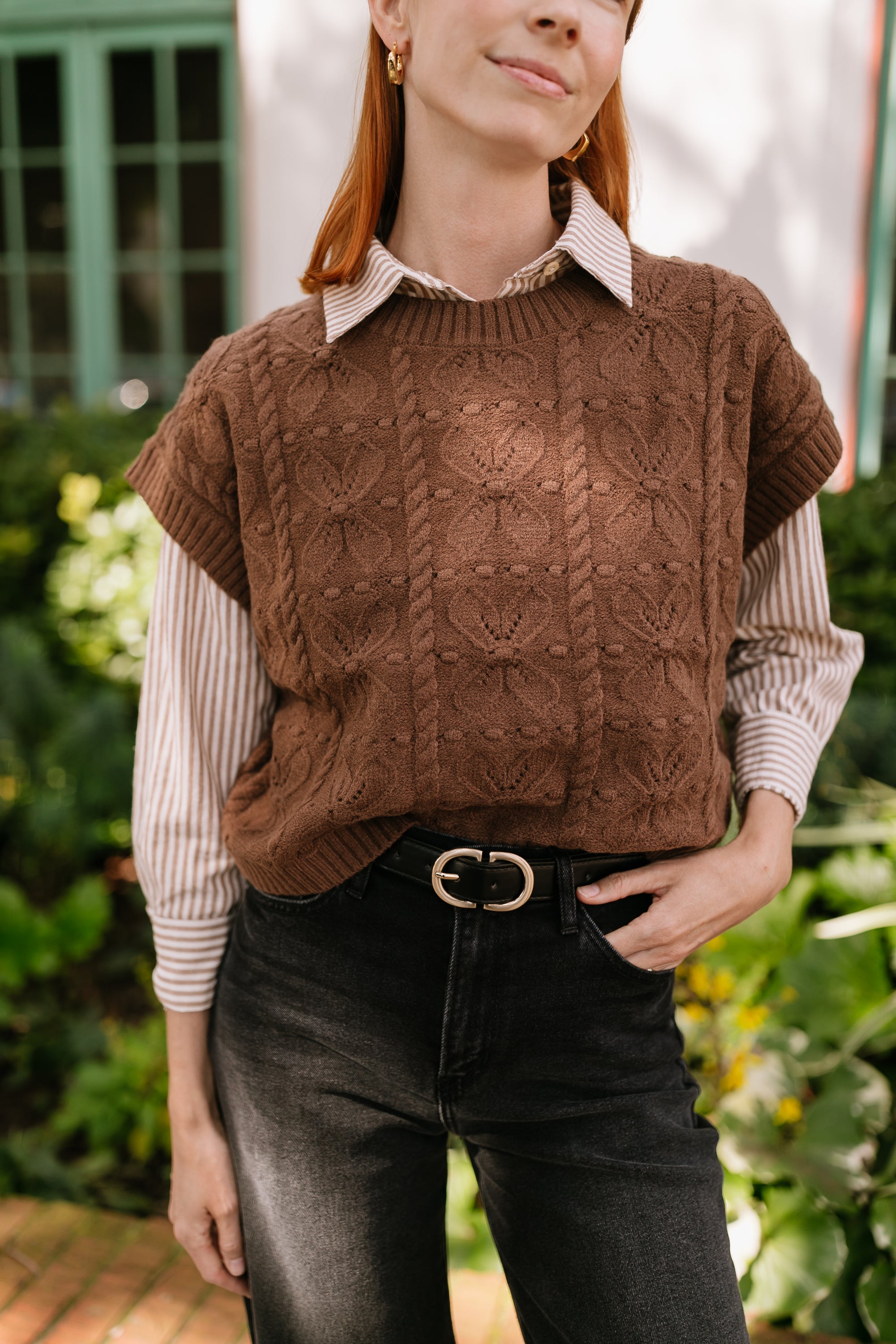 The Leigha Brown Knit Button Top