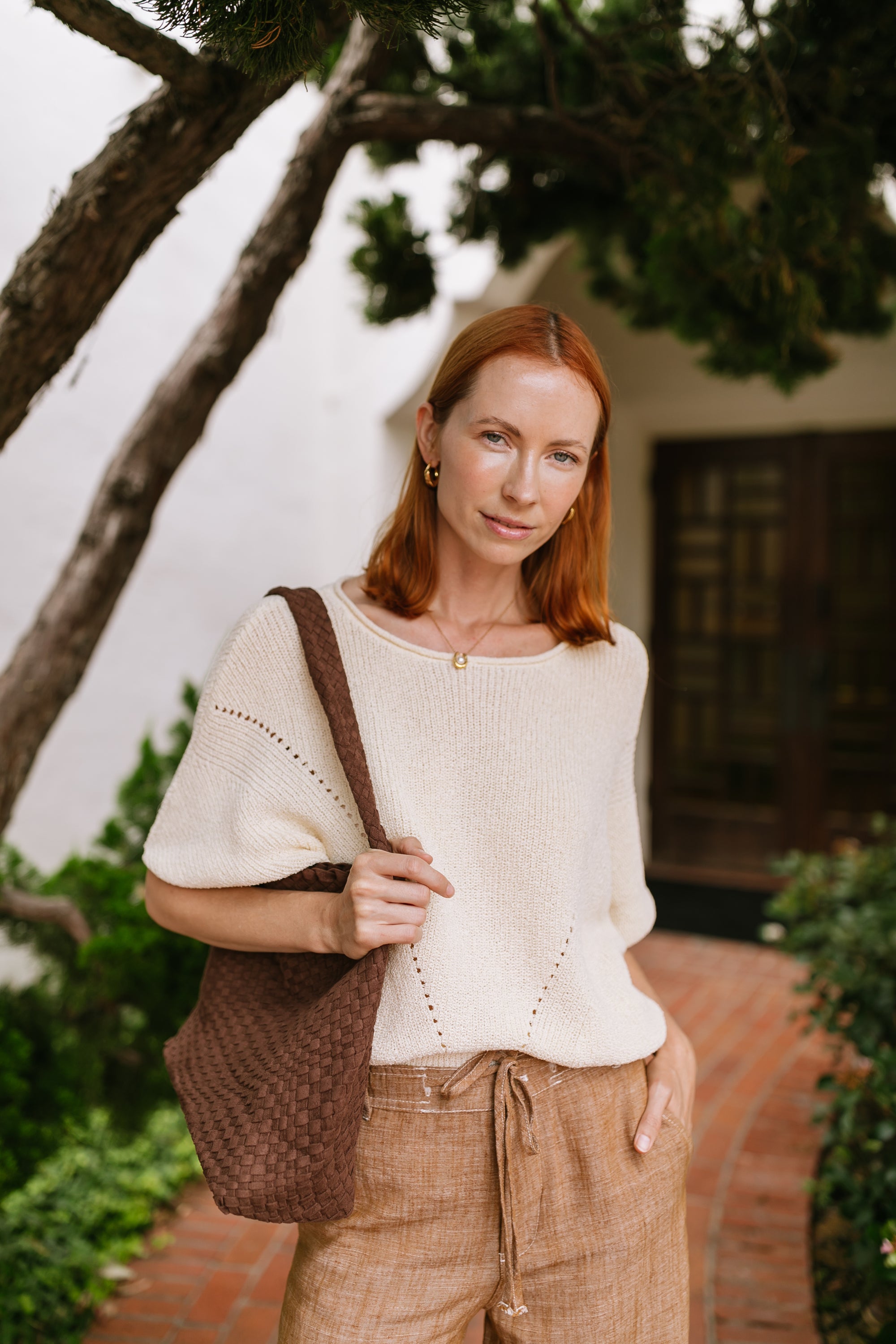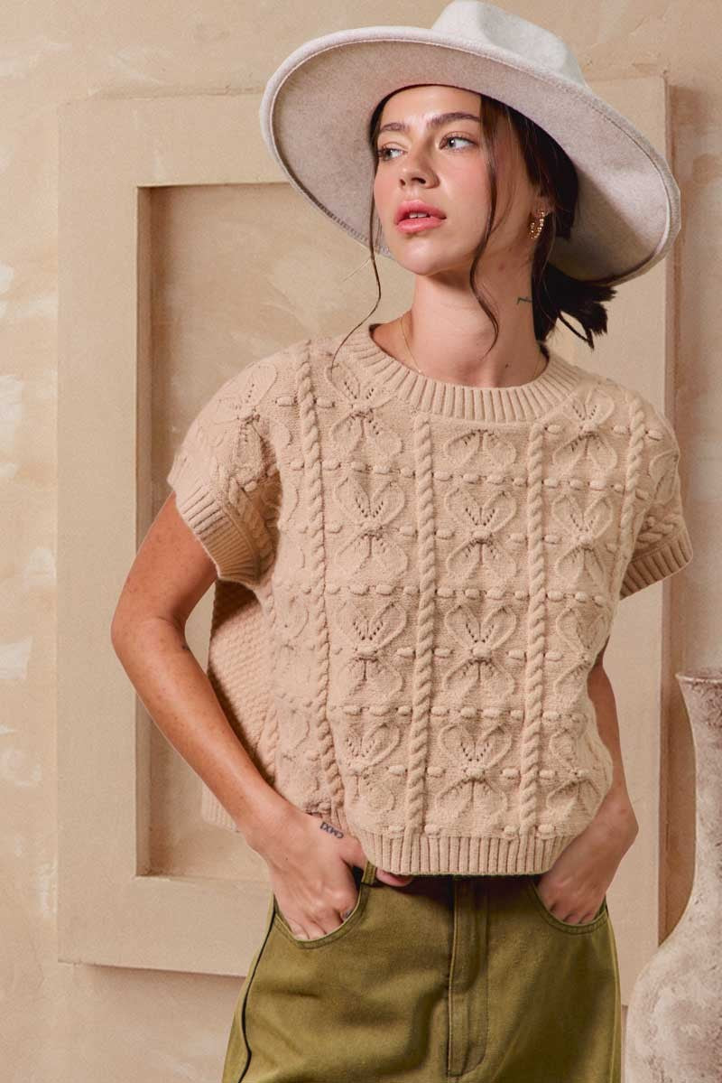 The Remy Cream Pointelle Ribbed Knit Sweater