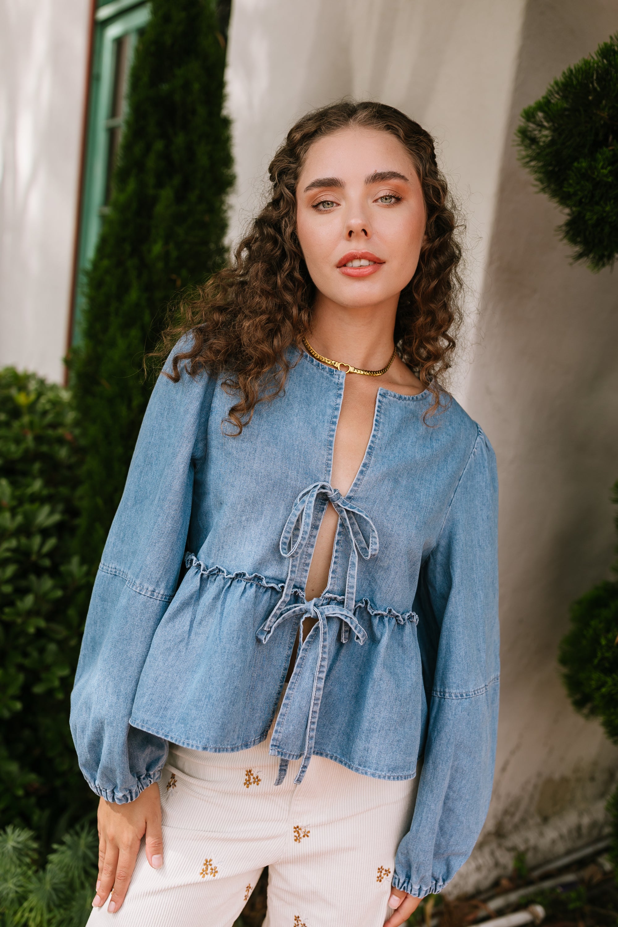 The Marisa Front Tie Denim Top