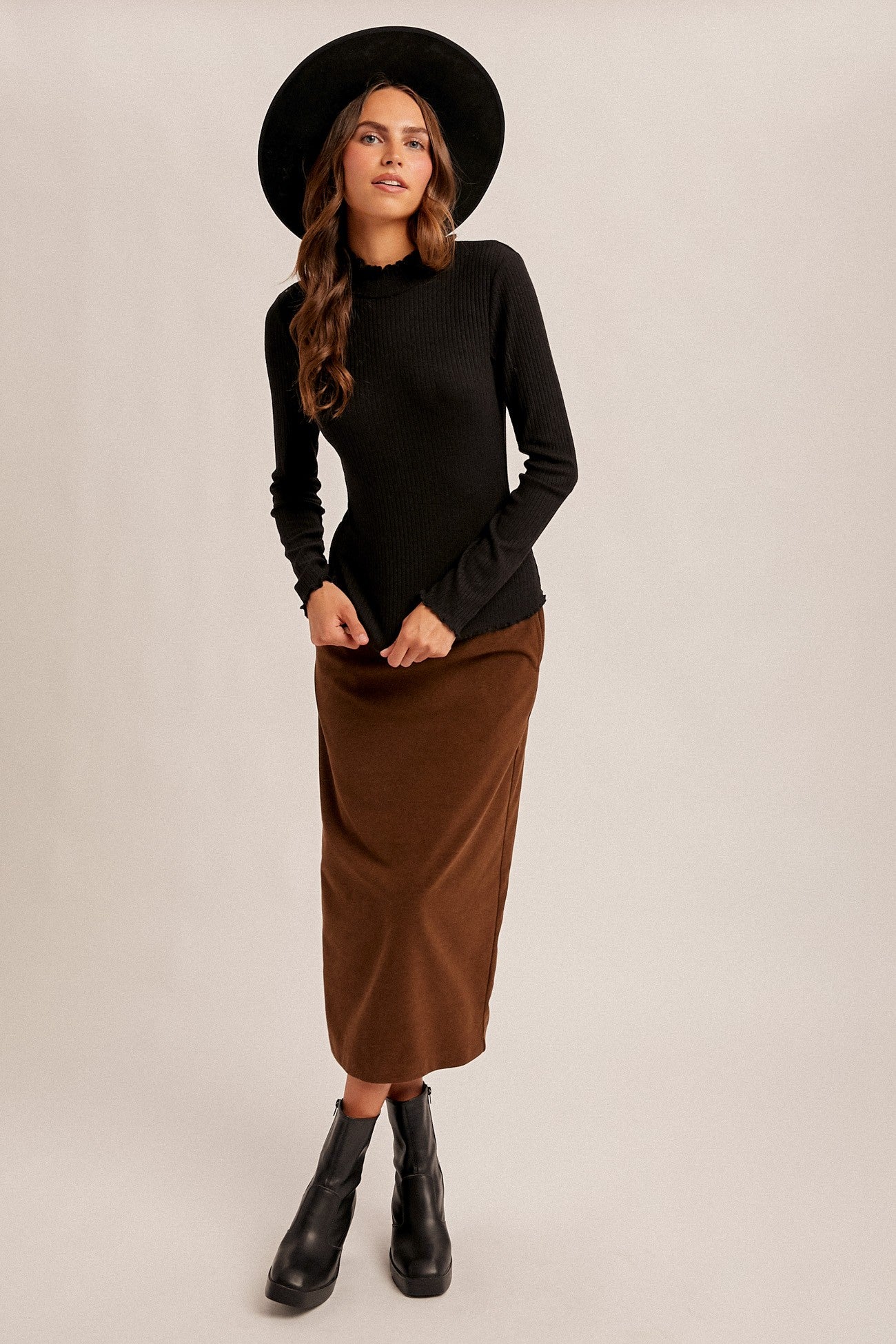 The Kory Mocha Lettuce Edge Turtleneck Top