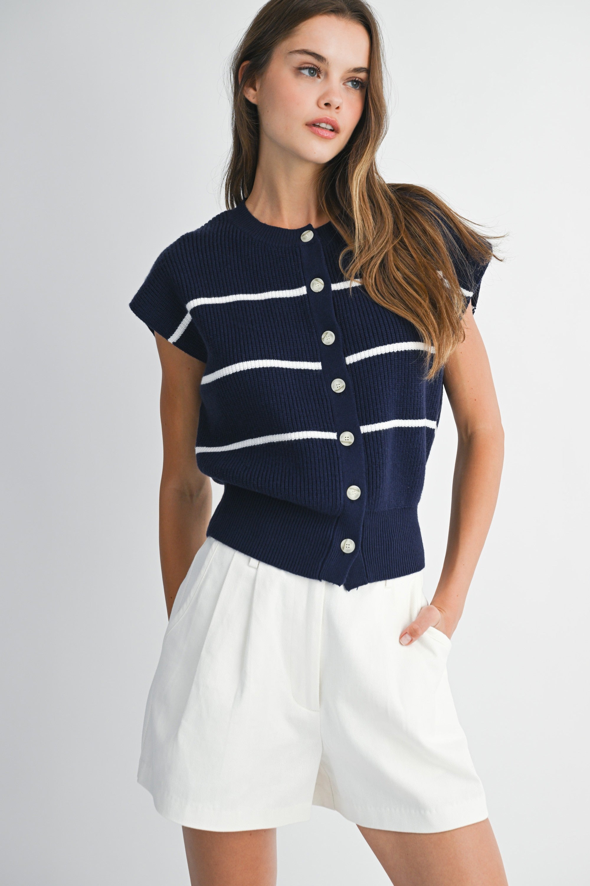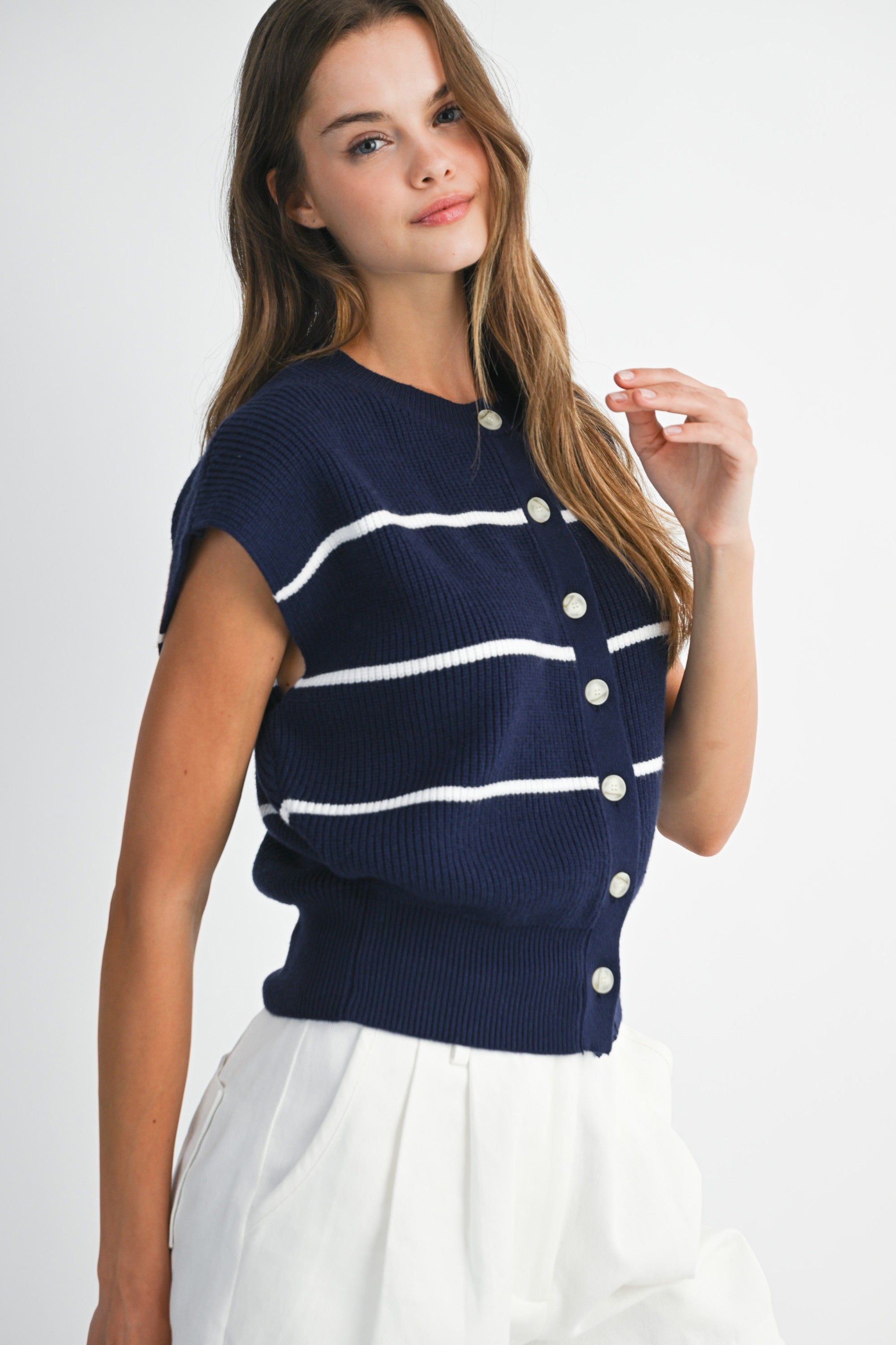 The Cindy Striped Front Twist Blouse