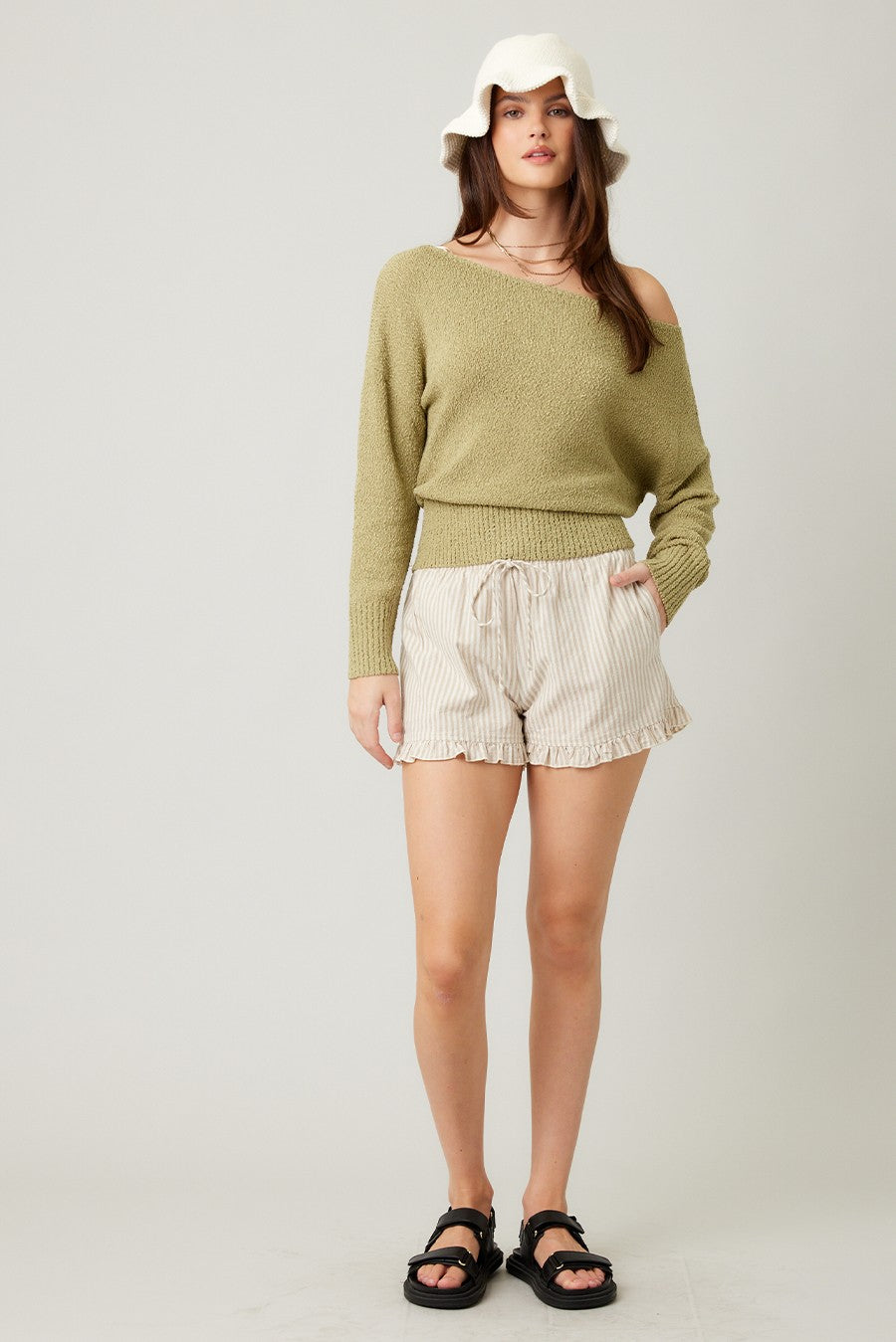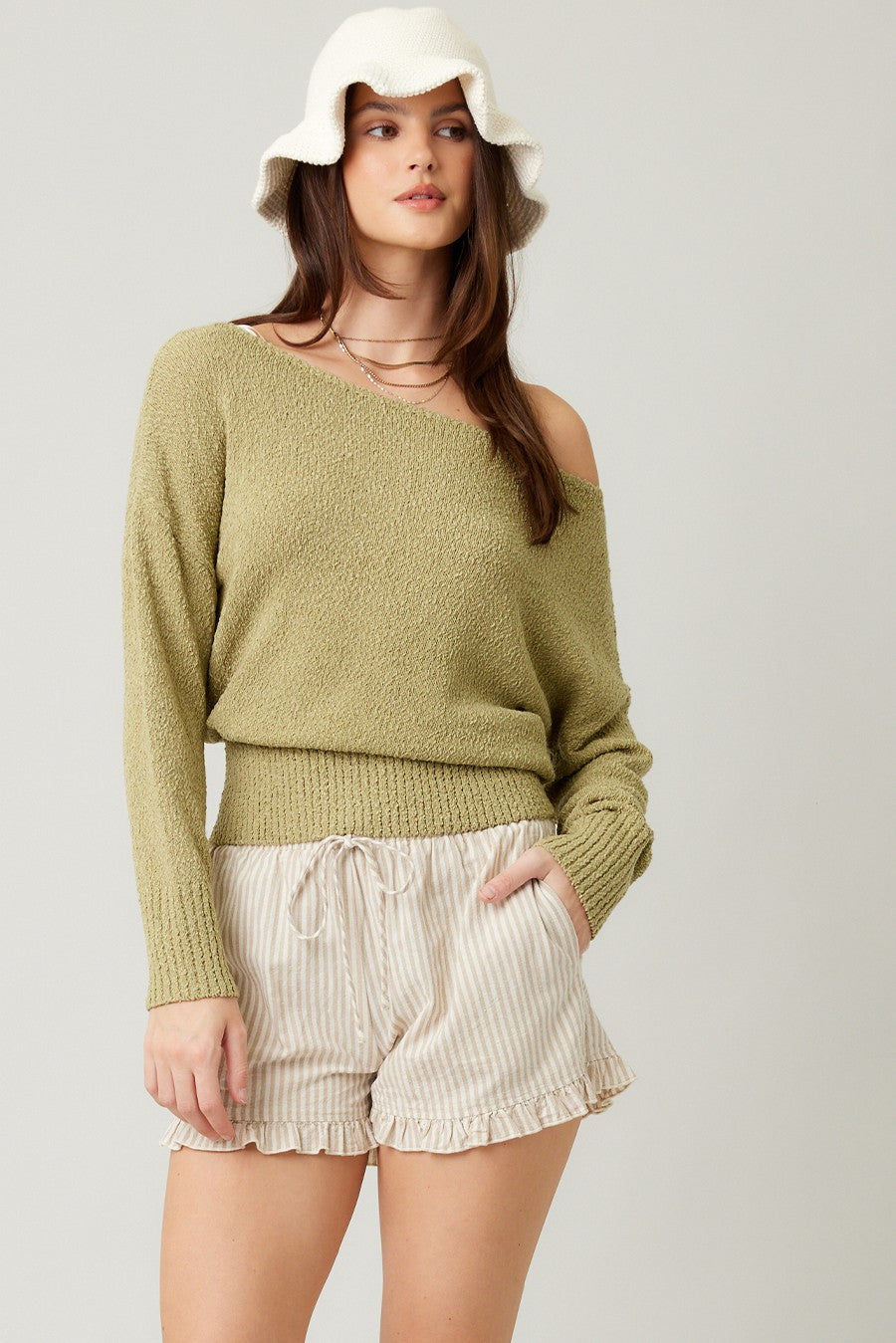 The Whitney Olive Off Shoulder Sweater