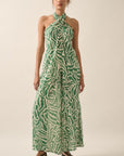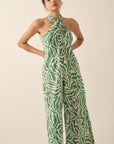 The Avayah Abstract Convertible Halter Jumpsuit features: