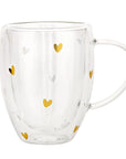 The Gold Foil Hearts Double Wall Tea Cup With Handle