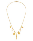 - Fish, pearls, starfish and scallop shells hang from an 18" drawn cable chain