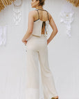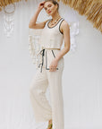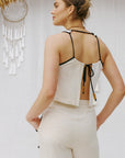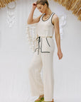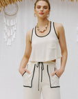 The Ryann Natural Contrast Binding Tank + Pant Set - Sold Separately