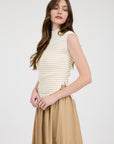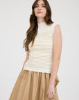 The Sharon Light Khaki Stripe Mock Neck Sweater