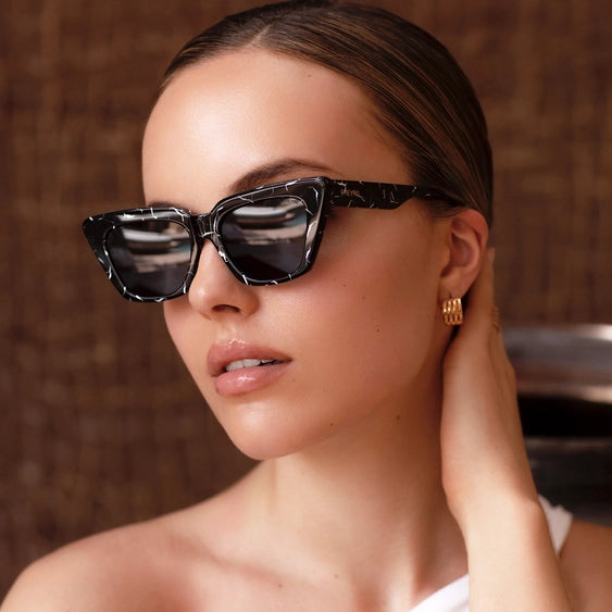 The Vista Black Marble Acetate Cat Eye Sunglasses