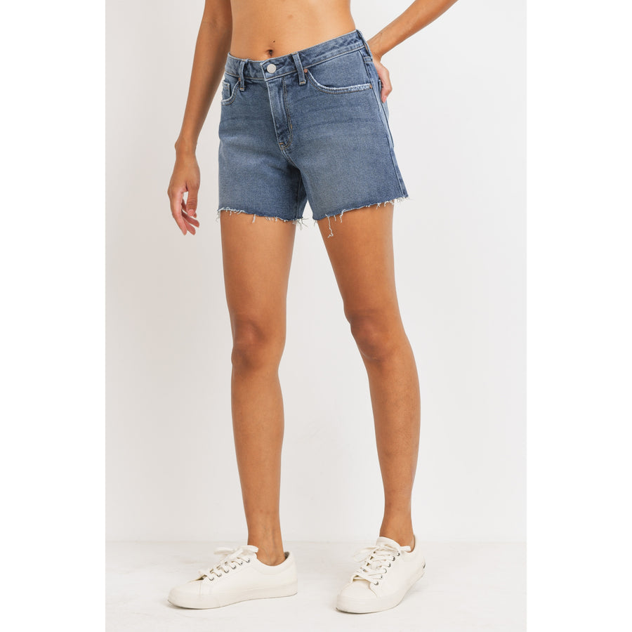 A great pair of jean shorts for daily wear! The Channing A-Line shorts are perfect for wherever the warm, sunny days take you! A high rise and cut-off hem with a slightly longer inseam at 4.5" paired with a high rise give make these shorts a staple.